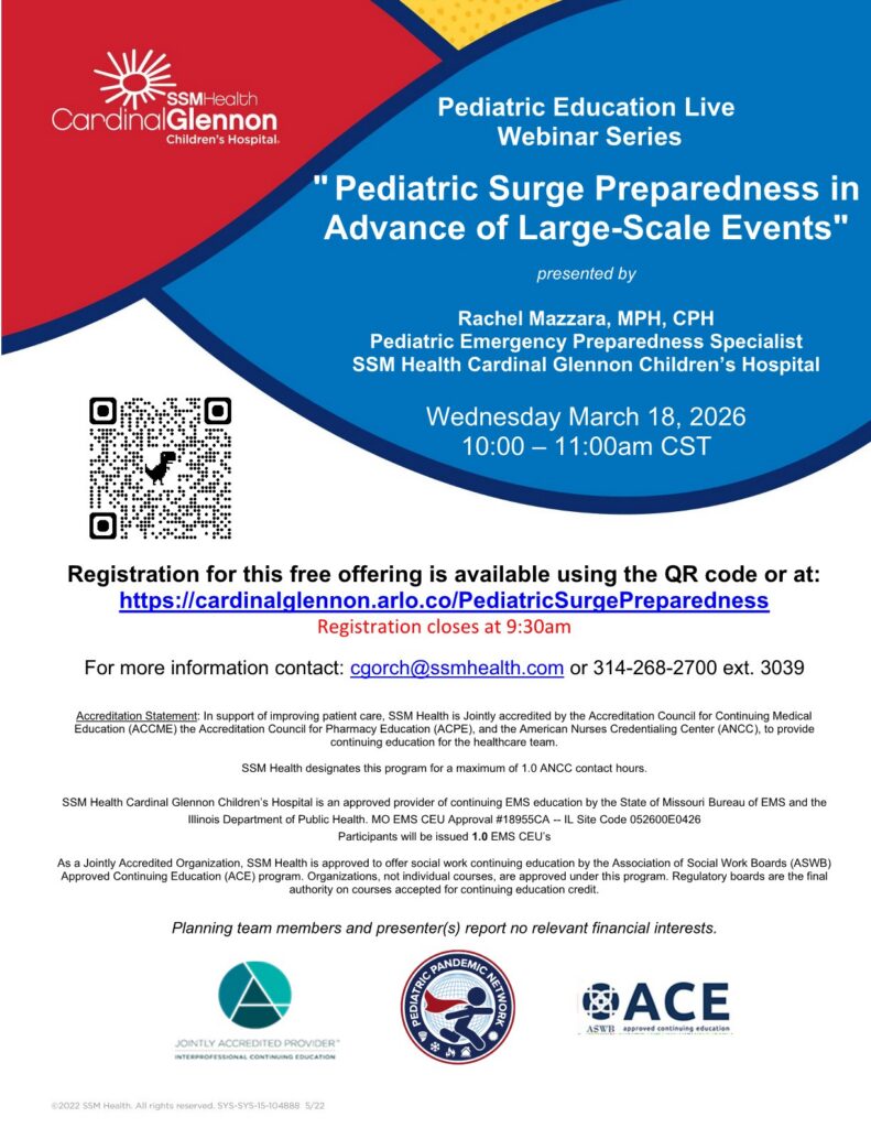 Pediatric Education Live Webinar Series: Pediatric Surge Preparedness in Advance of Large-Scale Events